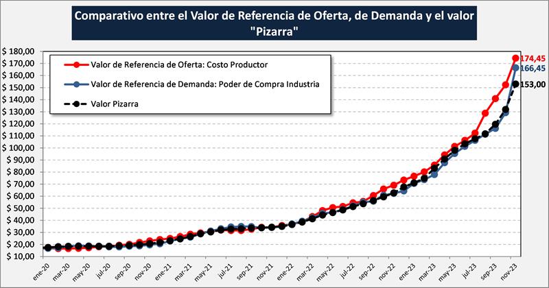Valor Pizarra: precio publicado por la DNL-MAGyP en base a la muestra de 18 empresas.