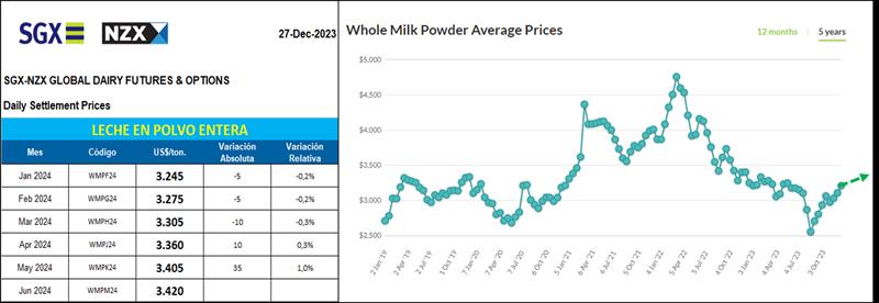 Mercado de Futuros NZX – Leche en Polvo Entera 27/12/2023