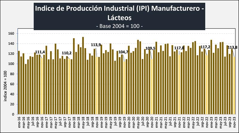 Índice de Producción Industrial Manufacturero – LÁCTEOS - noviembre de 2023