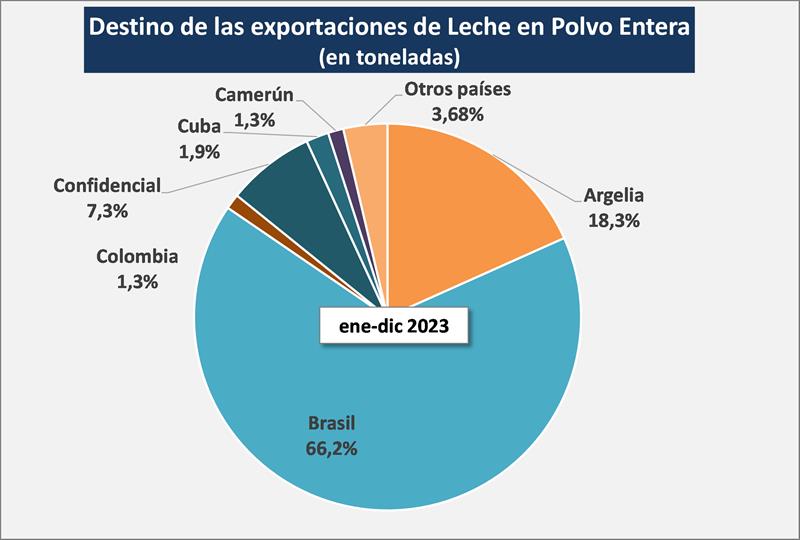 Cifras definitivas de exportaciones del período enero-noviembre del año 2023 con datos de la Dirección Nacional Láctea: