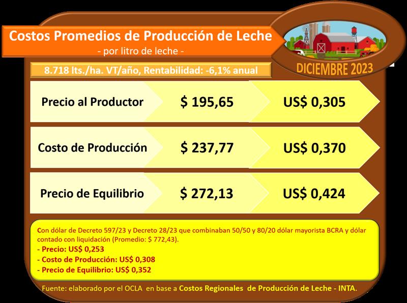 Costos Regionales de Producción de Leche, valores actualizados a DICIEMBRE del 2023 24/1/2024