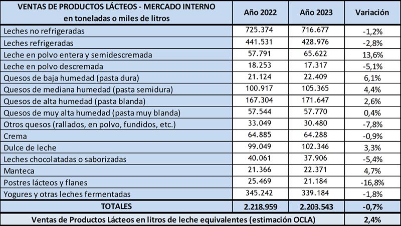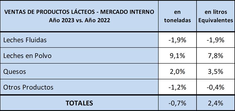 Ventas de Productos Lácteos en el Mercado Interno – diciembre 2023 26/1/2024