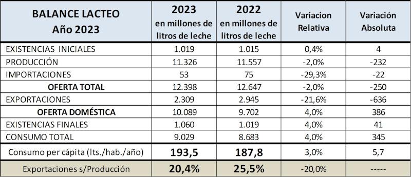 Balance Lácteo Año 2023 30/1/2024