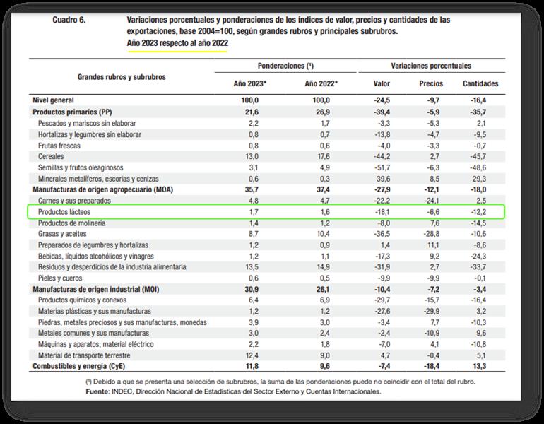 Precios y Cantidades del Comercio Exterior - Lácteos 6/2/2024