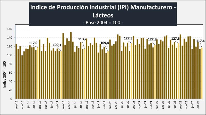 Índice de Producción Industrial Manufacturero – LÁCTEOS - diciembre de 2023