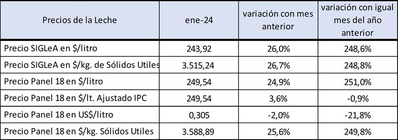 Precios de la leche al productor: enero de 2024 15/2/2024