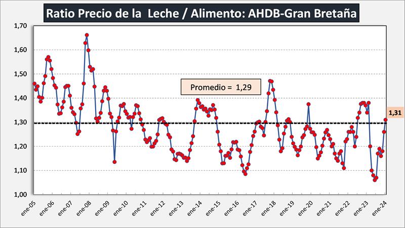 Indicador Milk Feed Price Ratio elaborado por AHDB Dairy del Reino Unido.