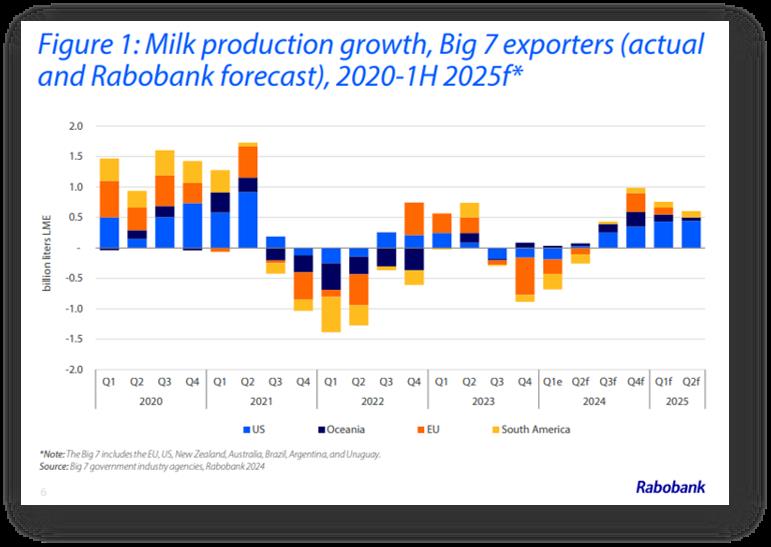 El crecimiento de la producción de leche está ganando impulso. Los buenos márgenes agrícolas y las condiciones estacionales favorables respaldarán esta tendencia hasta la temporada 2024/25.