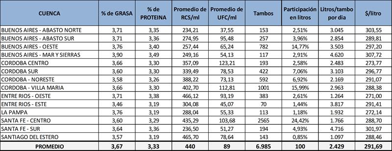 Provincias y Cuencas Lecheras: producción, calidad y precio 19/3/2024