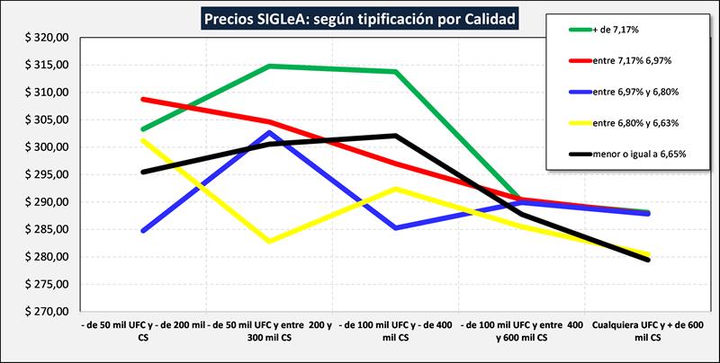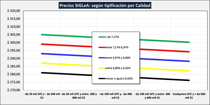 En el cuadro de tipificación, la leche comercializada se divide en 25 estratos según composición y calidad higiénico-sanitaria y, dentro de cada estrato, se muestra un promedio ponderado del precio del total de esos litros y además un promedio ponderado del 20% superior e inferior de los precios.