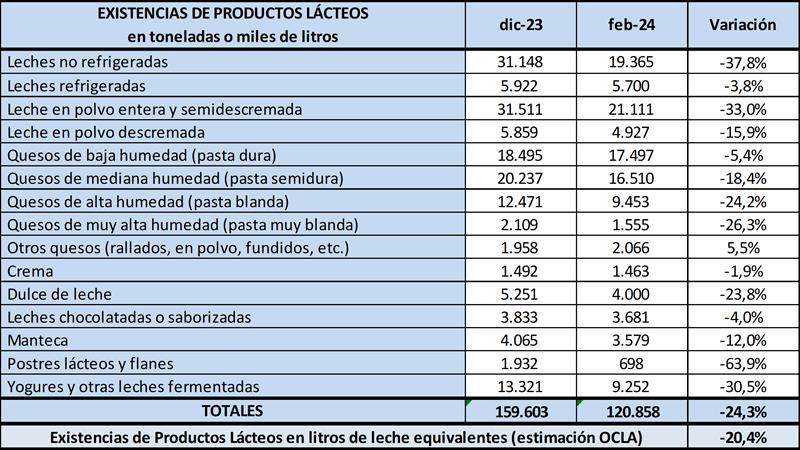 Existencias de Productos Lácteos – febrero 2024 3/4/2024