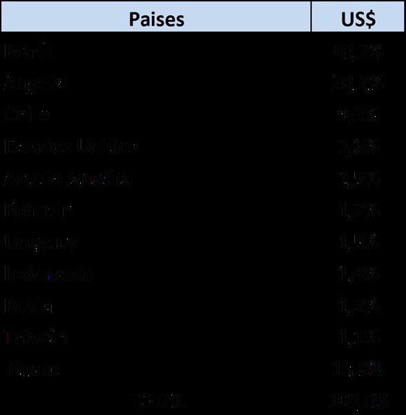 El destino de las exportaciones (en función al monto en dólares) se conformó: