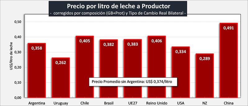 Precio de la Leche al Productor en dólares por litro, corregidos por Sólidos Útiles (Grasa Butirosa + Proteína):