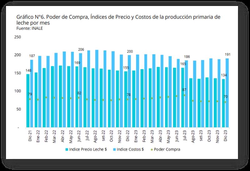 la Leche (cociente entre el Índice Precio Leche e Índice de Costos) fue 70 en
