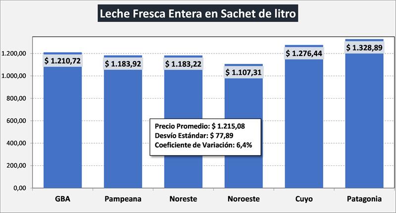 Se observa también en el análisis de los datos y con la información de Consultoras de Mercado, que existe una gran dispersión de precios en función al canal comercial y a la región. El gráfico siguiente ejemplifica la diferencia regional.