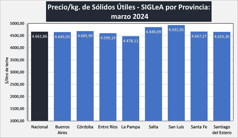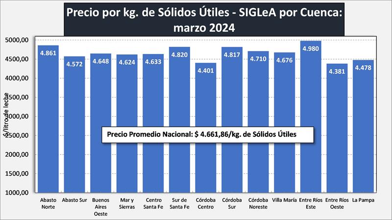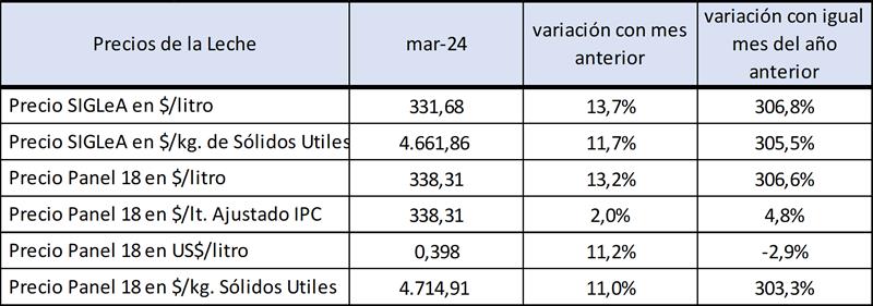Precios de la leche al productor: marzo de 2024 16/4/2024
