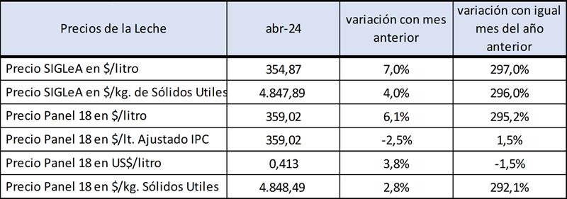 Precios de la leche al productor: abril de 2024 15/5/2024