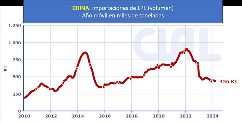 Rabobank mantiene su estimación de importaciones de LPE en casi 460.000 toneladas, frente a las 431.000 toneladas de 2023, pero un 20% menos que la media de 10 años.
