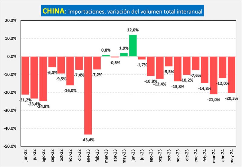 CHINA: importaciones de productos lácteos a enero-mayo de 2024 24/6/2024