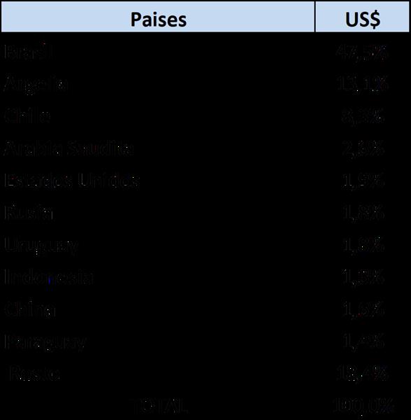 El destino de las exportaciones (en función al monto en dólares) se conformó: