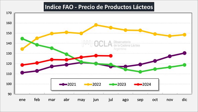 Indice de Precios de los Lácteos de FAO 5/8/2024