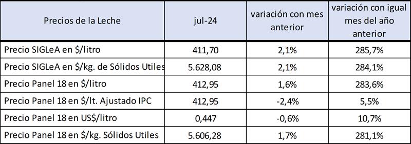 Precios de la leche al productor: julio de 2024 15/8/2024