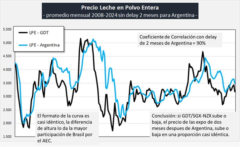 Cabe mencionar que estos precios son de referencia en el mercado mundial por la importancia de Nueva Zelanda en el mismo, con la salvedad de mercados específicos que cuentan con aranceles de ingreso como puede ser el caso del Mercosur con su Arancel Externo Común del 28%. Pero evidentemente en la cadencia o forma de la curva, los precios del GDT y NZX son de absoluta referencia para el mercado mundial de las principales commodities y sobre todo para Argentina.