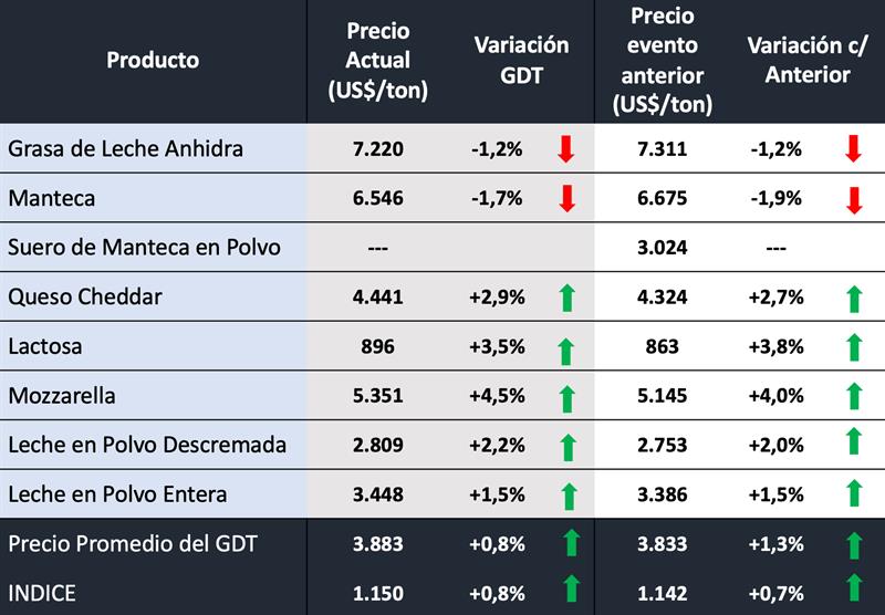 Evento N° 364 del Global Dairy Trade 17/9/2024