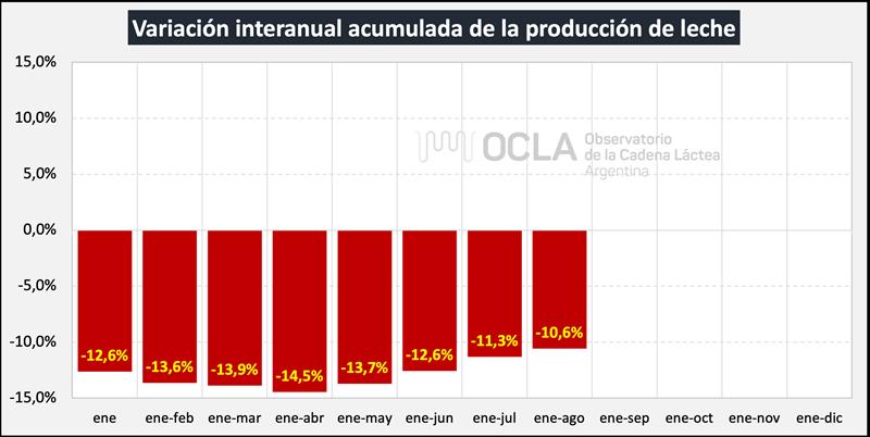 La caída de producción se fue profundizando durante la primera parte del año, acumulando un 14,5% menos de producción para el primer cuatrimestre del año, respecto a igual período de 2023. En la mayoría de las zonas los datos vienen mejorando significativamente y se da una recuperación entre mayo y agosto de las fuertes caídas de los meses anteriores. Se espera que se sigan recuperando los niveles productivos y pasar a valores positivos interanuales y el acumulado anual esté entre 4 y 6% por debajo, año contra año. Recordando que, en el último cuatrimestre del año, se produce alrededor del 38% de la producción total del año y siendo un factor decisivo para lograr la recuperación que se presenten lluvias importantes en los próximos meses.