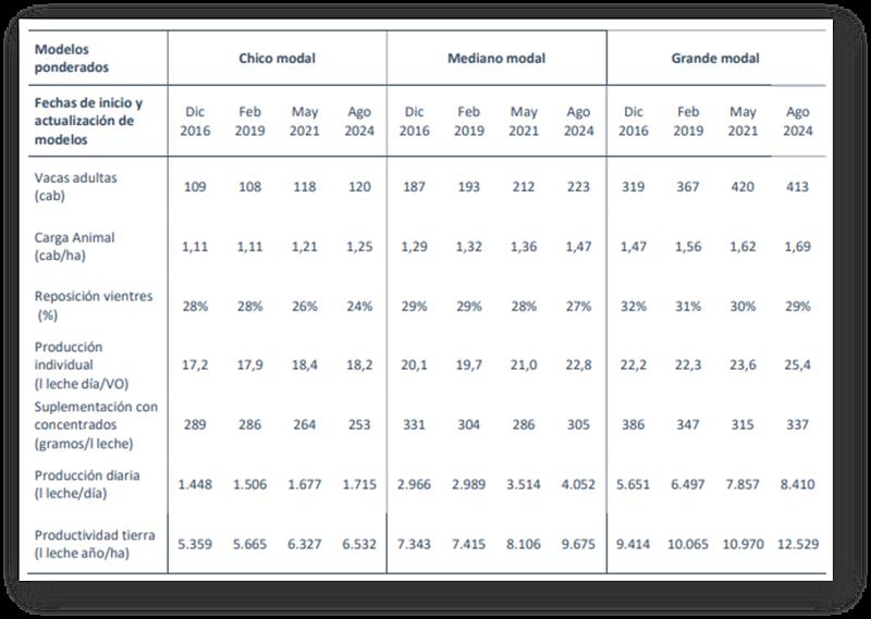 Los valores mostrados representan un promedio ponderado de los datos disponibles. Estos modelos han sido calibrados y actualizados periódicamente desde su primera publicación en diciembre de 2016, lo que garantiza su relevancia en el análisis de los costos de producción de leche en la región.