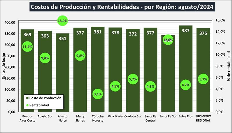 Costos Regionales de Producción de Leche, valores actualizados a AGOSTO del 2024 25/9/2024