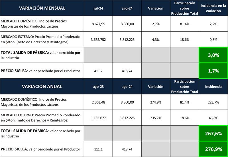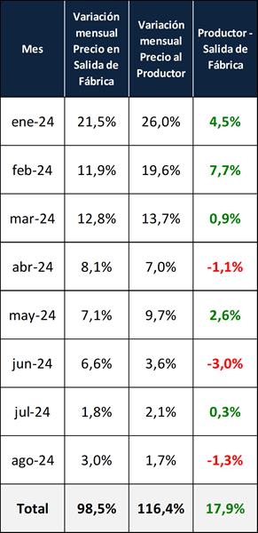 Variación del Valor de Salida Fábrica y del Precio al Productor – agosto 2024 27/9/2024