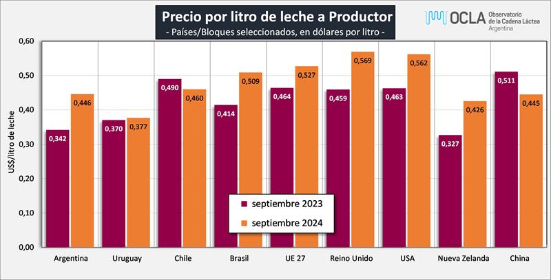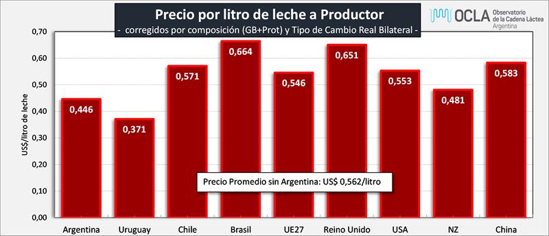 Precio de la Leche al Productor en dólares por litro, corregidos por Sólidos Útiles (Grasa Butirosa + Proteína):