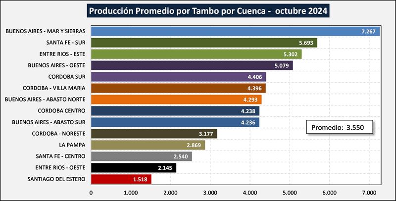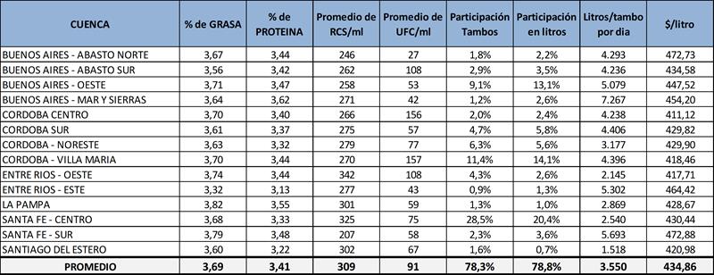 En el cuadro puede observarse que las columnas de participación en cantidad de tambos y producción, los totales no llegan al 100% ya que faltan los tambos fuera de cuencas tradicionales.