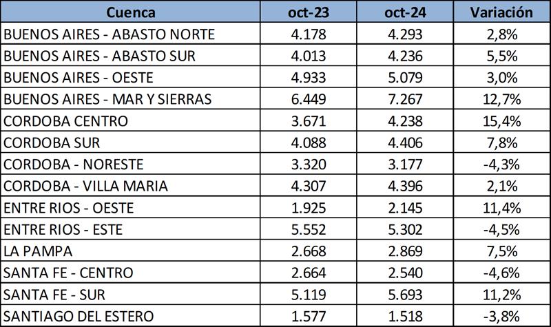 Provincias y Cuencas Lecheras: producción, calidad y precio 18/11/2024