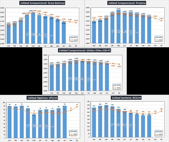 Evolución mensual de la Calidad de Leche: últimos dos años