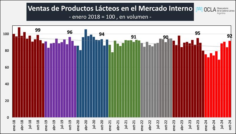 Ventas de Productos Lácteos en el Mercado Interno – octubre 2024 27/11/2024