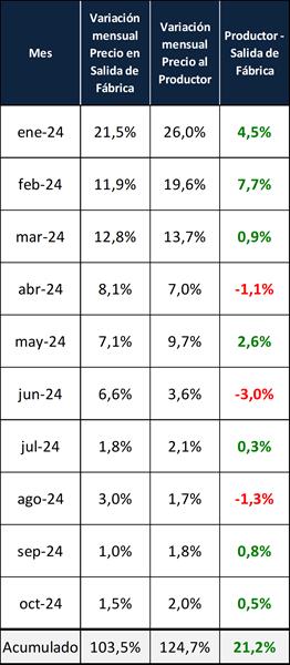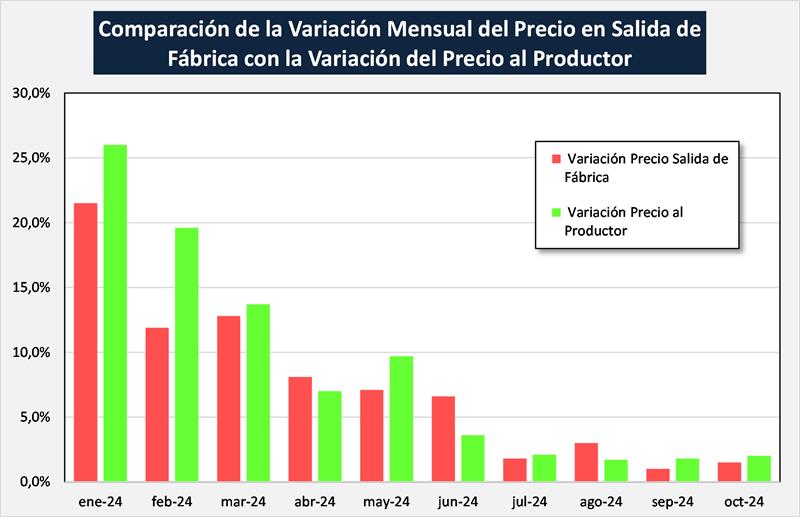Variación del Valor de Salida Fábrica y del Precio al Productor – octubre 2024 28/11/2024