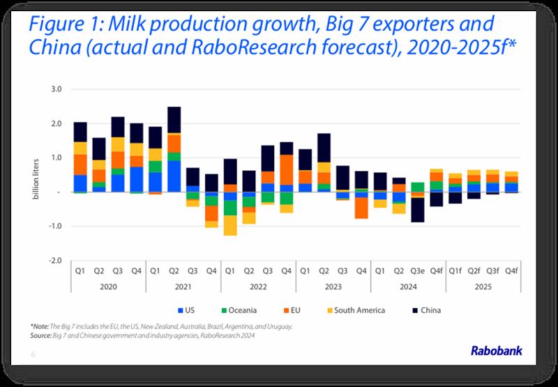 La segunda mitad de 2024 marca un punto de inflexión para el crecimiento de la oferta de leche en las 7 grandes regiones exportadoras.