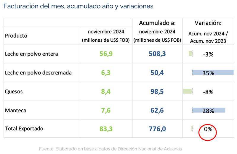 URUGUAY: exportaciones de lácteos - noviembre 2024