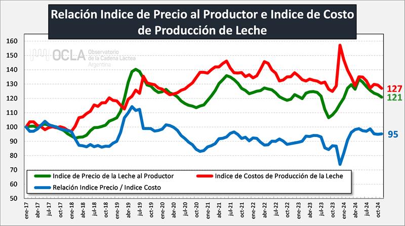 Se calcula el Indice de Costos de Producción de Leche, actualizado por IPC y se referencian todos los costos mensuales a enero 2017 = 100.