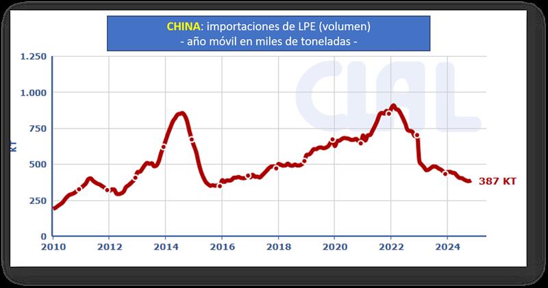 Estimamos que el déficit de importación de China en 2025 será cercano a los 10,5 millones de toneladas, un 2 % más interanual, según nuestras previsiones de oferta, existencias y demanda. Se pronostica que las importaciones de LPE aumentarán un 8% interanual, a 428.000 toneladas, ya que los compradores están reabasteciendo desde una base baja, lo que respalda el sentimiento alcista más reciente del mercado.