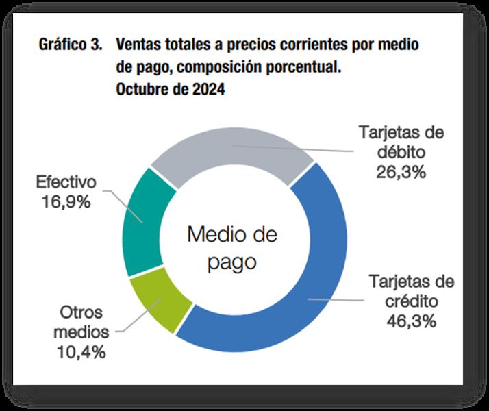 El principal medio de pago fueron las tarjetas de crédito (46,3%), seguidas de cerca por las de débito (26,3%) y en tercer lugar el pago en efectivo.