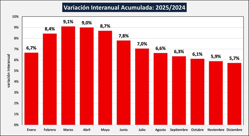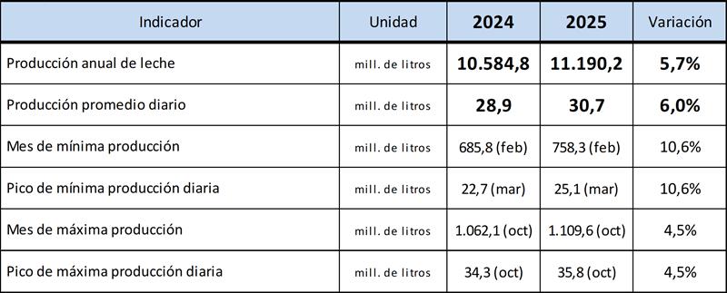 Esta estimación surge de la información aportada por 15 industrias lácteas que reciben y procesan alrededor del 49% de la leche de Argentina, sin ninguna otra intervención de OCLA sobre dichos números y arrojó una suba del 5,72% anual, alcanzando la producción estimada para 2025 un volumen de 11.190,2 millones de litros de leche.