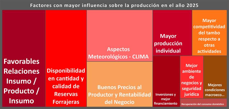 Por último, se tabularon los principales factores que un grupo importante de referentes sectoriales indicaron como más decisivos para determinar el comportamiento de la producción de leche en el transcurso del año 2025.