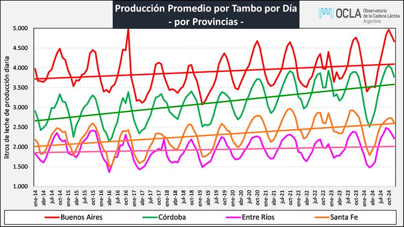 A continuación, el gráfico con las 4 principales provinciales lecheras (+ del 95% de la leche total) que permite ver con mayor nitidez la evolución.