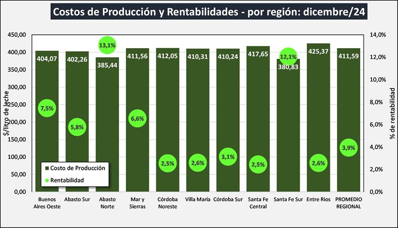 Costos Regionales de Producción de Leche, valores actualizados a DICIEMBRE del 2024 17/1/2025