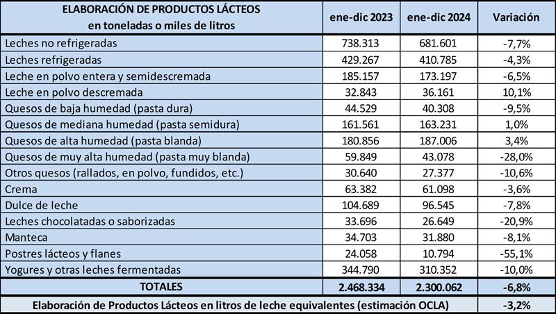Elaboración de Productos Lácteos – a diciembre de 2024 26/1/2025