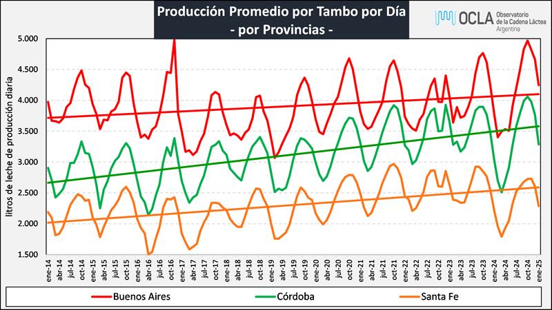 A continuación, el gráfico con las 3 principales provinciales lecheras (90% de la leche total) que permite ver con mayor nitidez la evolución.