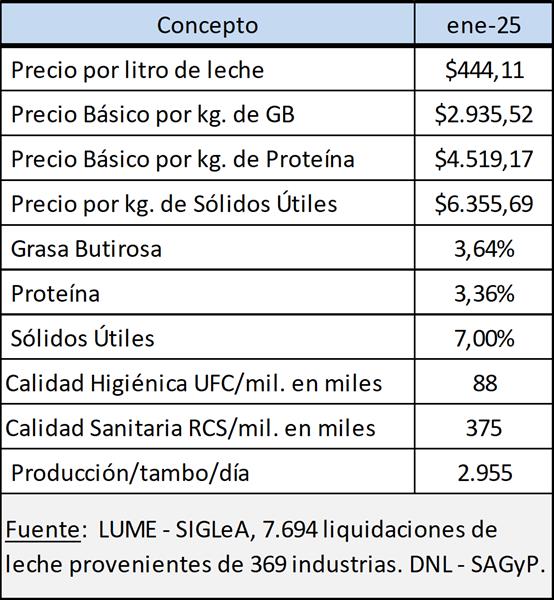 Estacionalidad de la Calidad de Leche: últimos 5 años